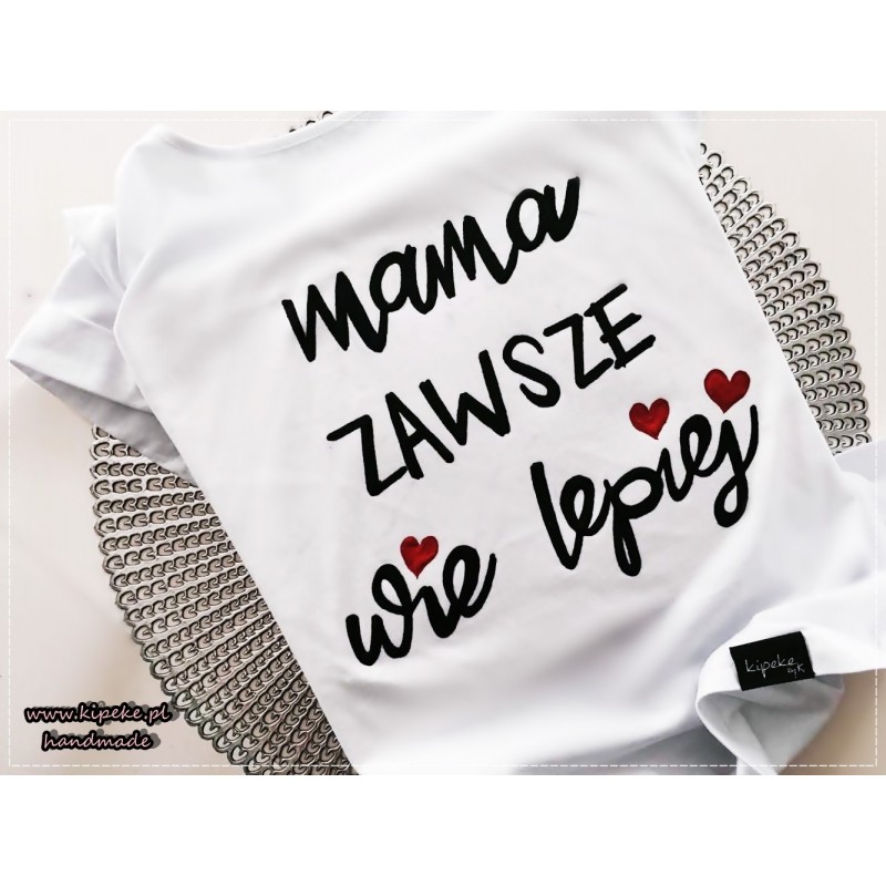 mama zawsze wie lepiej + czerwone serca - Koszulki ręcznie malowane - Kipeke.pl