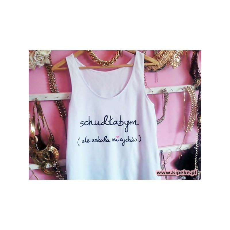 Schudłabym... ale szkoda mi cycków ( sam napis ) - Koszulki ręcznie malowane - Kipeke.pl