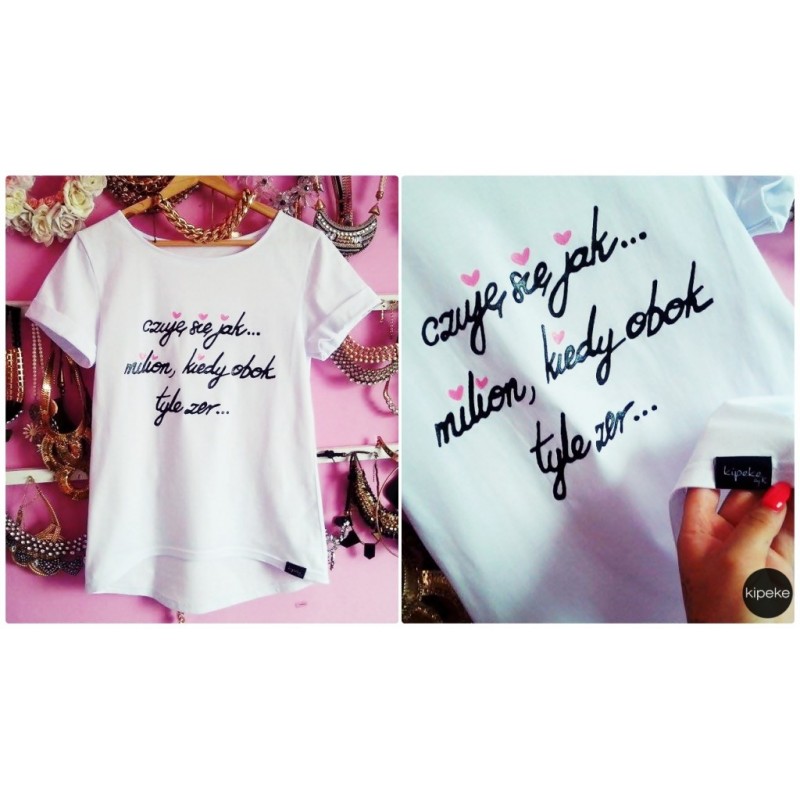 czuję się jak milion kiedy obok tyle zer - Koszulki ręcznie malowane - Kipeke.pl