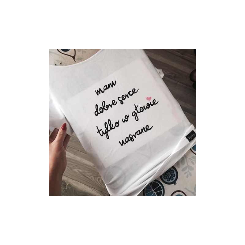 mam dobre serce tylko w głowie nasrane + serduszka pastelowe - Koszulki ręcznie malowane - Kipeke.pl