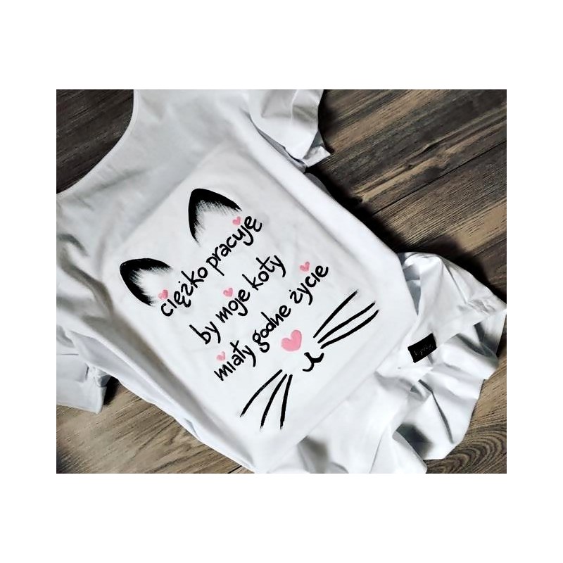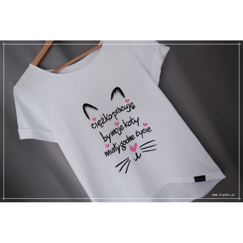 ciężko pracuje by moje koty miały godne życie - Koszulki ręcznie malowane - Kipeke.pl
