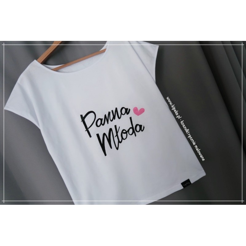Panna Młoda + różowe serce - Koszulki ręcznie malowane - Kipeke.pl